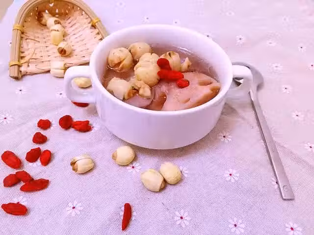 將藕洗凈,去皮拍碎後切塊備用;備鍋加水,依次放入香米,百合,藕塊,大棗,枸杞等文火熬個把小時,到黏稠適中,即可放點紅糖,顏色誘人,清甜可口。