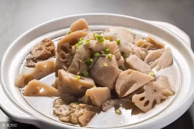 將排骨洗凈剁塊過冷河去腥味,放入砂鍋,加入幾片姜,用中火煲熟,然後將洗凈切塊的蓮藕和事先浸泡過的紅棗放入,用文火慢燉上兩小時,起鍋時放鹽和少許胡椒,熱騰騰、香噴噴。