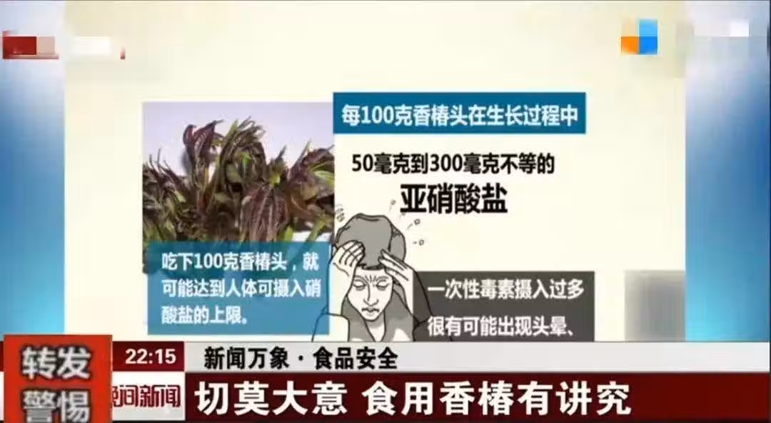 答案很明顯,香椿里確實有亞硝酸鹽,且老枝條的含量更高。焯水後含量會大大降低,鹽水腌制或者鹽水腌制放在冰箱裡過夜後含量大大增加。