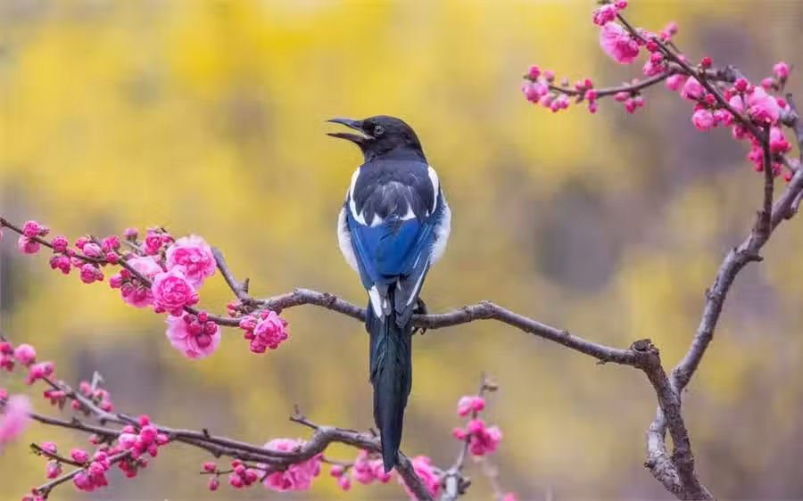 喜鵲是喜慶的象徵,古時候民間傳說,七月七日牛郎織女鵲橋會,就是依靠喜鵲構築的鵲橋來完成。 喜鵲是靈寵,如果家門出現喜鵲鳴唱,這代表著有好事發生,表示家庭中有人在事業上能獲得巨大的成功,得到認可,加官進爵;當然也有可能是多年未聯繫的親戚朋友登門拜訪,貴人降臨等等。