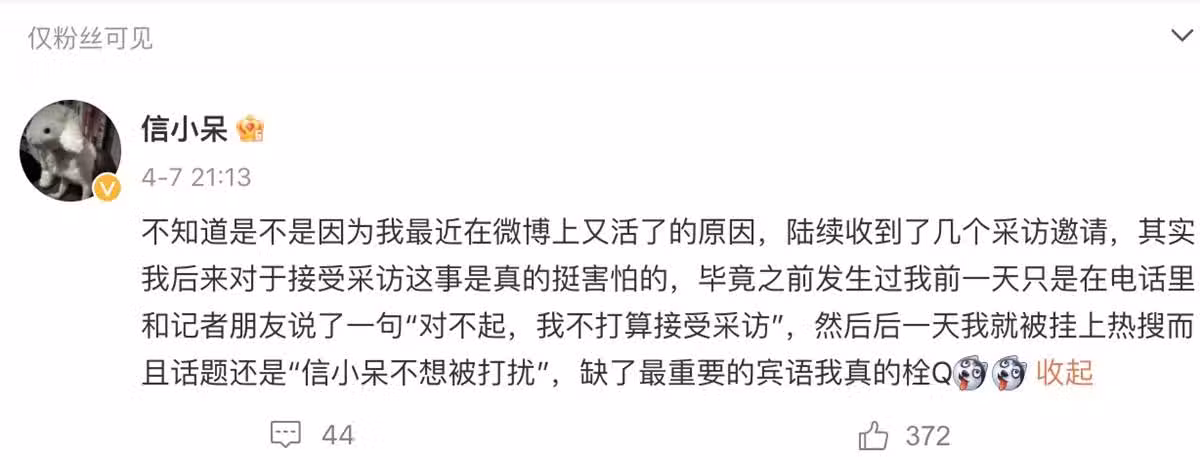 因此,信小呆重回微博之後,再也沒有發過自己的照片。
