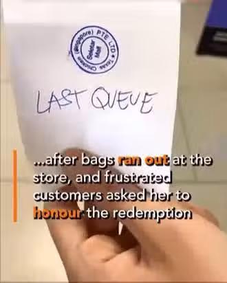 Texas Chicken店外無數人在排隊,只為了拿免費包包,但他們好像低估了新加坡人的「瘋狂」