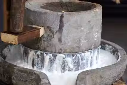 母親把地瓜乾和玉米等粗糧,頭天晚上泡上,天亮以後就推磨,磨成糊子,母親再烙煎餅。