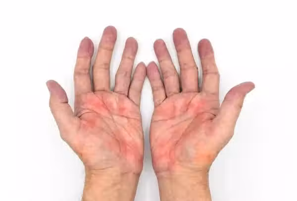 在患者患有糖尿病之時,其手掌顏色就會出現紅色,此大多出現在十指腹部等邊緣部位,進而此時就需要及時檢測自己的血糖了,還有就是高血壓疾患也可以造成手掌發紅;再者就是肌體出現供血不足、血小板降低之時,其手掌出現的顏色也是很紅的顏色。