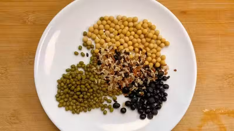 具體做法:1、準備2兩黑豆、黃豆、綠豆、紅豆和3兩三色糙米,先把它裡面破殼的及癟裂的挑出來,然後再用乾淨的清水多衝洗幾遍,最後再用清水浸泡半個小時,浸泡可以把所有的豆類外殼泡軟,在煮粥的時候能夠很快的煮熟,煮出來特別的粘稠。浸泡後的豆子會比原來大一倍,如下圖!