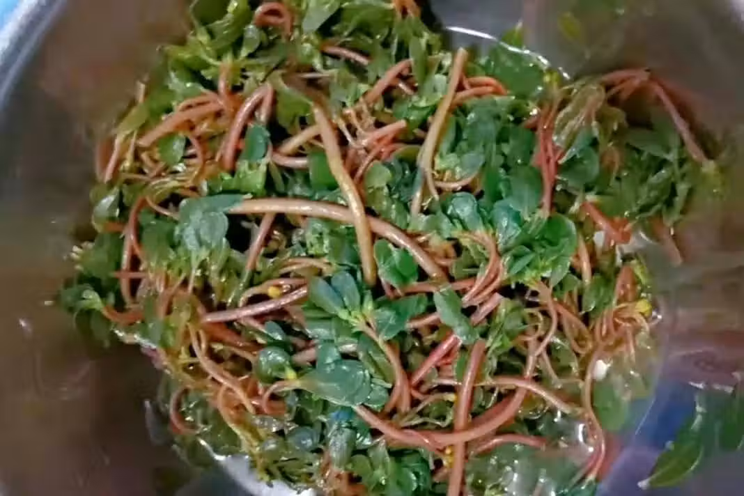 2、把大蒜剝去外皮清洗乾淨後加少許鹽給它搗成蒜泥,在蒜泥中加入適量的雞精、少許香油和一點點水攪拌均勻後倒在馬齒筧上,加入一點芝麻醬攪拌均勻就可以裝盤開吃了。