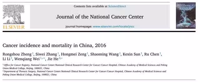 2022年,國家腫瘤臨床醫學研究中心赫捷院士團隊在《國家癌症中心雜誌》(JNCC)發表了題為《2016年中國癌症發病與死亡率》的文章。詳盡闡述了2016年中國癌症疾病負擔情況。研究顯示,2016年,我國癌症發病率前3名分別是肺癌、結直腸癌和胃癌,死亡率前3名是肺癌、肝癌和胃癌。