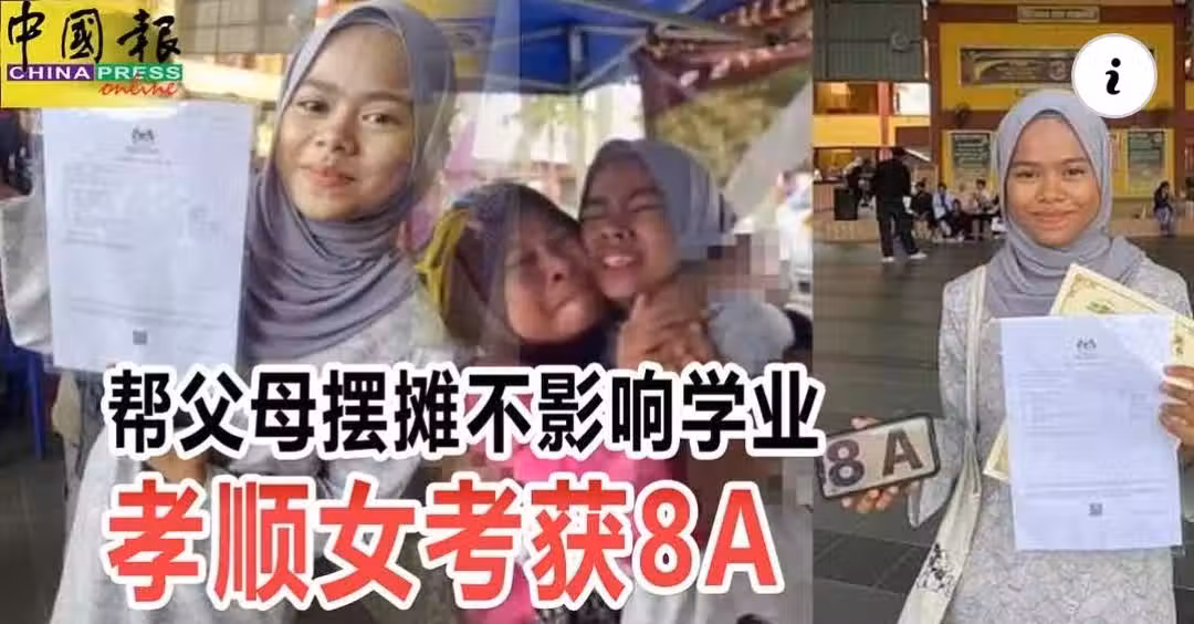 得知自己在SPM考獲8A後,諾莎菲嘉興奮地摟抱母親。(圖片摘自mStar)