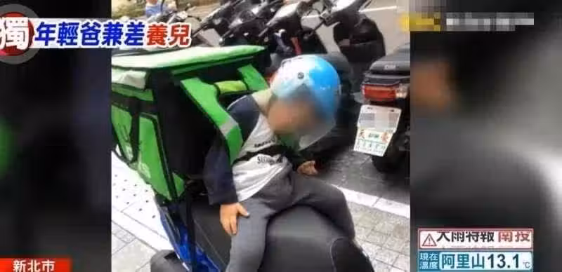 咬牙撐下去!24歲年輕爸獨力養家「日做鐵工9小時、晚上外送到淩晨」3歲兒揹保溫袋睡著!爸爸紅了眼眶:對不起孩子!