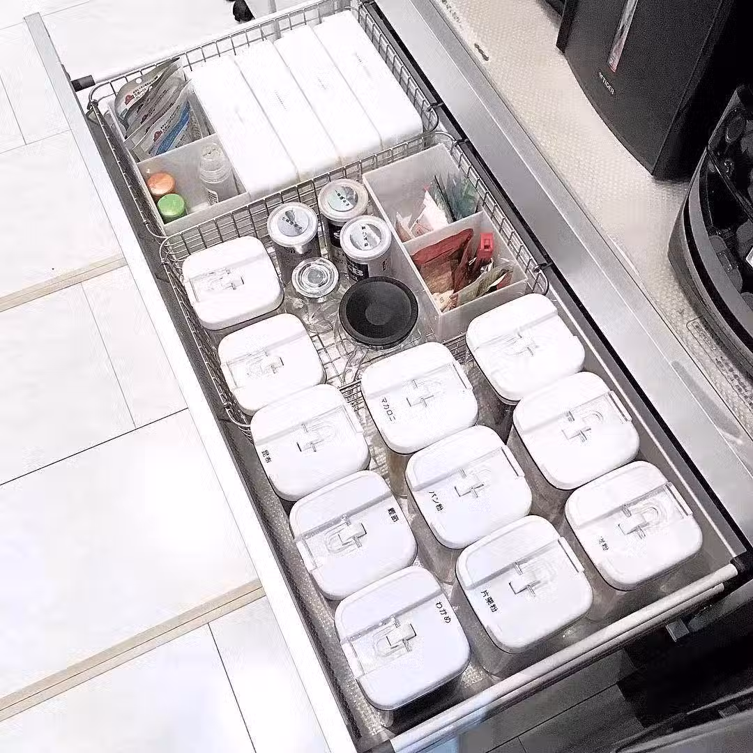 抽屜中加入分隔工具將每類物品進行細分收納,我們打開抽屜的時候是否更方便?寬扁的平底鍋,立著放置是否更方便?。。。。。。。