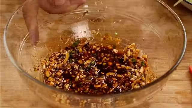 3.將萵筍絲放入盆中,放入辣椒絲,攪拌均勻就可以盛出裝盤了。