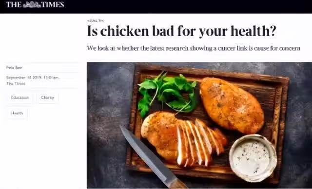 首先上面這個「吃雞肉致癌」的研究,只是一個關聯性研究,只能證明吃雞肉可能與某些癌症有關。沒有說明雞肉致癌的機制和原因,並不能證明雞肉直接導致了癌症。