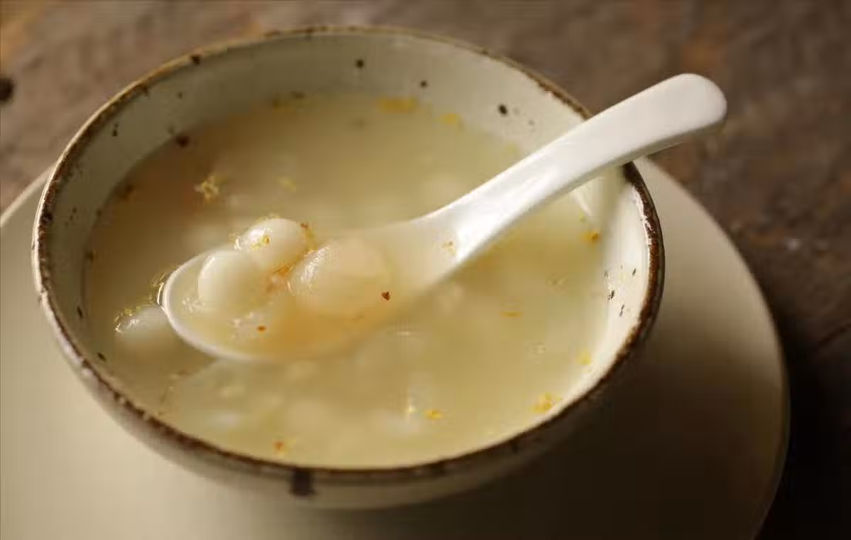 這道桂圓桂花酒釀圓子甜而不膩,口感糯軟,帶有桂圓和桂花的芬芳香氣,加上酒釀的微醺味道,非常適合女性食用,它融合了桂圓、桂花和酒釀等食材,具有豐富的營養價值和獨特的風味,對女性的健康有著積極的影響。