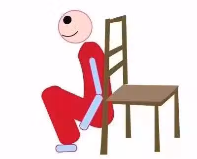 兩腳前腳掌著地,腳後跟抬離地面。雙膝彎曲,大腿壓著小腿,但時間控制在 30 秒到 1 分鐘即可,避免堅持過久拉傷或抽筋。