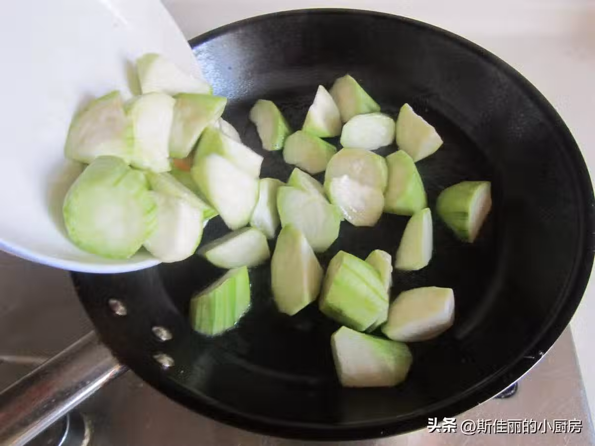 3. 燒熱鍋放入適量的油, 倒入打散的蛋液進去煎至定型後用筷子劃散成小塊盛出備用;4. 燒熱鍋放入少許油, 將準備好的絲瓜進去翻炒幾下;5. 加入焯好的毛豆米進去繼續翻炒至絲瓜微微透明;6. 加入少許鹽調味,翻炒兩下後;7. 最後將炒好的雞蛋放進鍋中翻炒均勻即可。