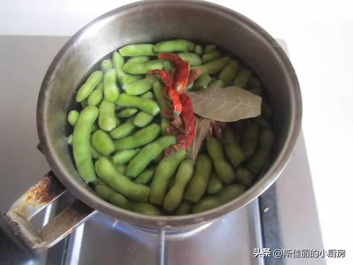 製作:1.將洗凈的毛豆用簡單剪去兩頭,這樣更利於毛豆入味;3. 毛豆開水下鍋, 將準備好的五香大料放入,加入幾滴油;4. 加入比平時炒菜多點的鹽,再加入大半勺糖;