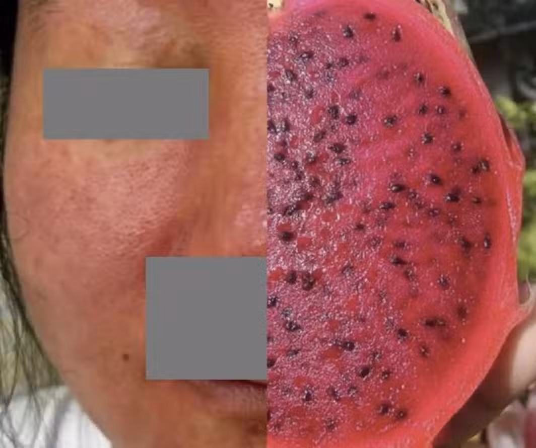 ▲ 女子臉部更是紅到發紫,醫師形容像火龍果一樣(圖/翻攝自微博)