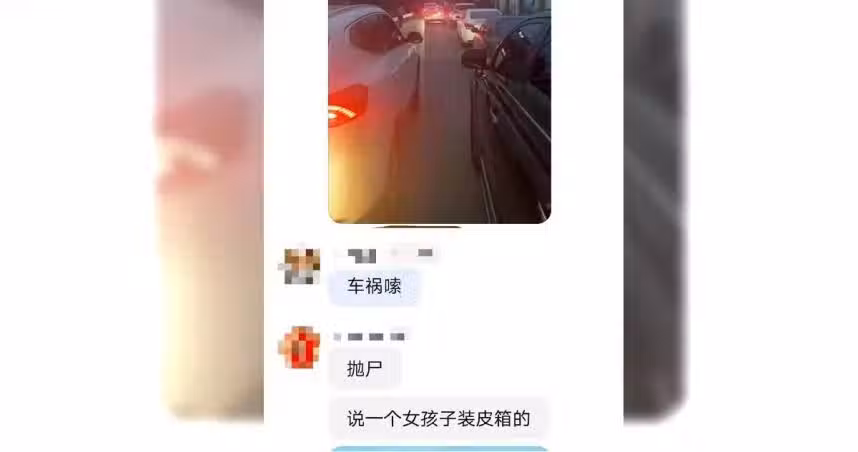 ▲民眾傳聞有女子遭殺害塞後,被塞進行李箱丟棄。(圖/翻攝自微博)