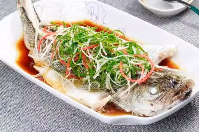 洗凈的魚,上面抹上花椒水去腥,再切點蔥姜放上去,也是去腥用的,等待腌制15分鐘。鍋子裡倒水燒開,把魚放上去蒸8分鐘出鍋,將裡面的湯汁倒出來。用新的蔥薑絲,蓋在魚的身上,然後澆上蒸魚豉油,潑上熱油,就可以開吃了。