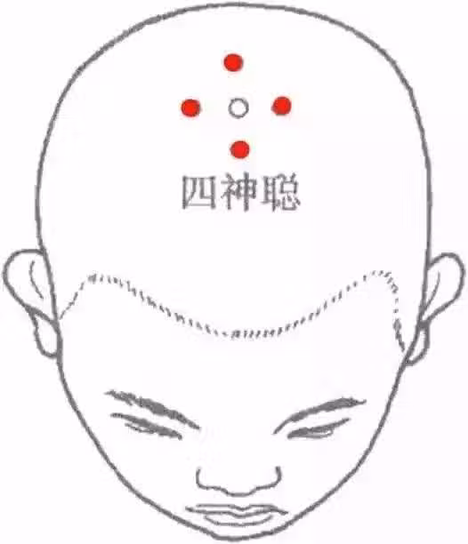 用拇指的指腹在穴位上點按,以左右前後的順序進行,增加血液循環。(在百會前、後、左、右各開1寸處)