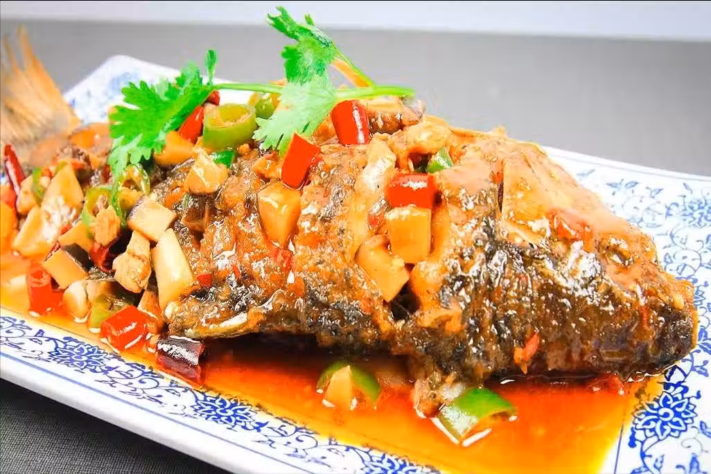 5、從鍋邊淋入香醋3克,香醋可以軟化魚骨,現在開始調味:加入雞粉2克,胡椒粉2克,白糖5克,老抽2克,加入適量的老抽提一下底色,放入炸好的鯽魚,不停地往鯽魚身上澆湯汁給魚入味,蓋上鍋蓋,小火燜煮五分鐘。,一道鮮香美味的乾燒鯽魚就做好了。