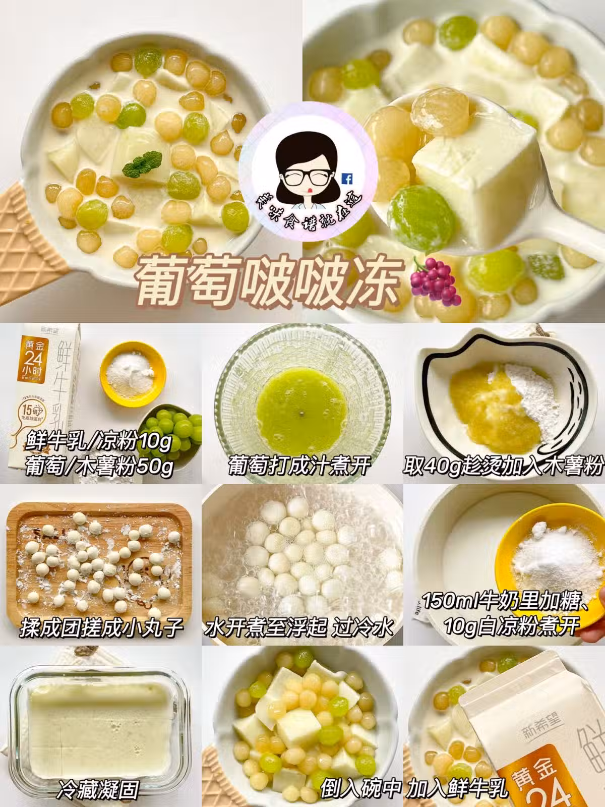 鮮牛乳、葡萄、白涼粉10g、木薯粉50g