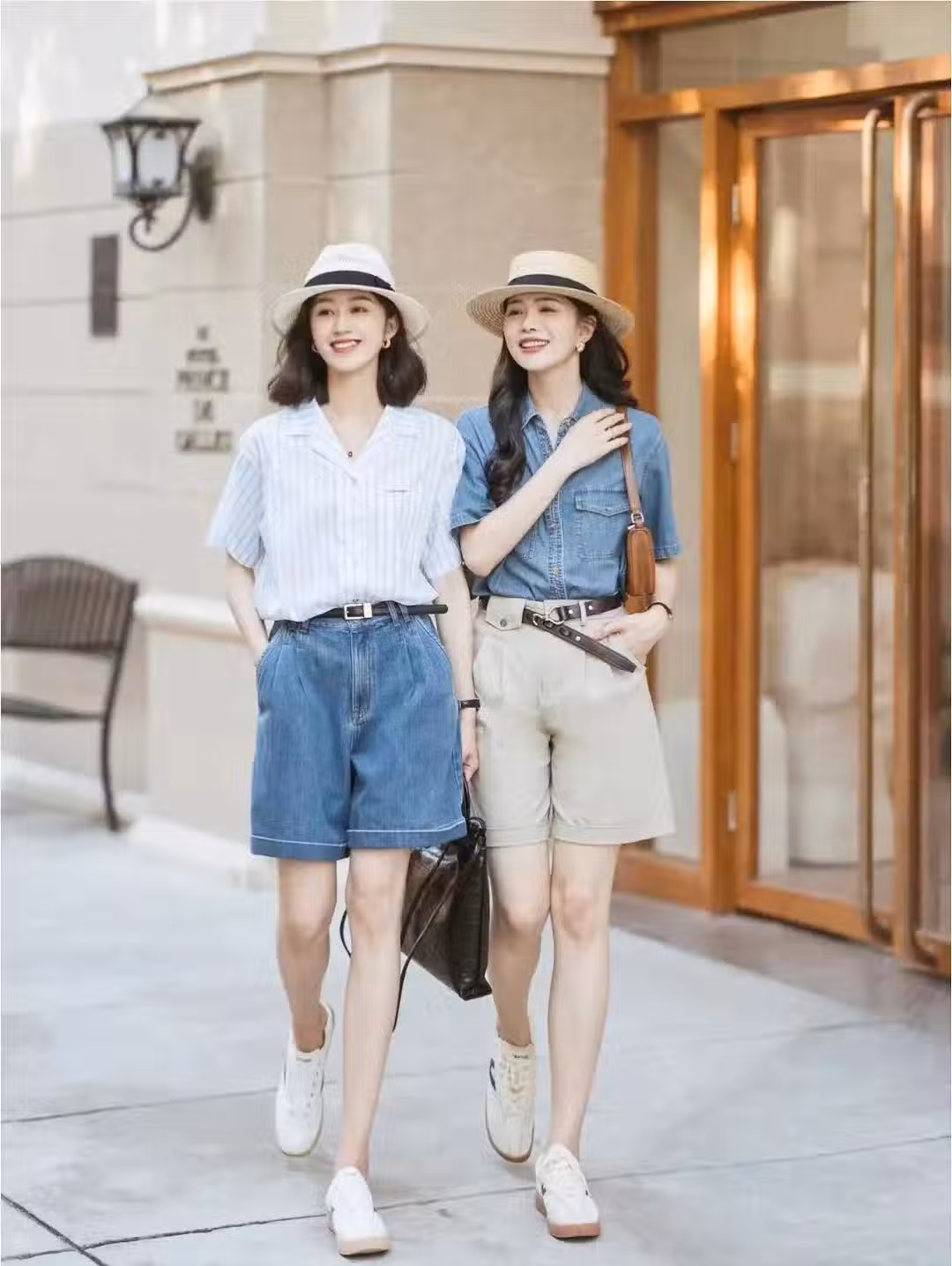 夏天最愛穿的搭配,寬鬆又有型,妥妥的時髦小能手。百慕達短褲搭配襯衫,經典的結合,碰撞出不一樣的效果。短褲加根腰帶的設計,直接提高腰線不壓個子。牛仔上衣的材質配上小白鞋的組合也是帥氣翻倍的節奏。天氣很曬時,戴個高禮帽,讓整體的搭配感更加地瀟灑率性。