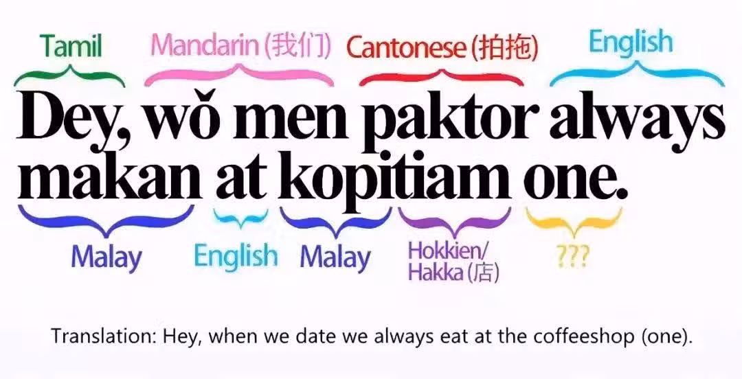 沒有經歷過Singlish洗禮的同志很難體會到,在新加坡,計程車叫「德士」,濃濃的自創式「Siglish(新式英語)」味。德士司機普遍中英文口音摻雜,總是會給人一種來到了地球城鄉結合部的感jio~ 有網友表示自己作為一個地道的北京人,一直對自己的普通話很有自信。直到他到了新加坡,我發現我聽不懂中文了……『八仙』『安哥』『馬達』「蘇東」都是啥意思?在新加坡生活久了,起碼三、四種語言雜糅在一起才是溝通的正確打開方式。