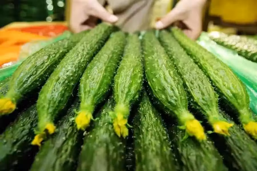 如何辨別激素黃瓜呢?很多朋友喜歡挑帶花且表皮扎手的黃瓜,其實這並不是這個季節判斷黃瓜是否新鮮的標準,此時 我們要觀察黃瓜的頂部是否存在凸起,如果有那必然是激素黃瓜,同時建議大家冬季食用黃瓜時削去表皮,減少因農藥殘留而讓有害物質進入身體的機會。