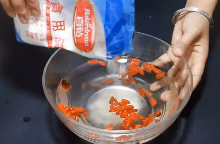 首先準備一個碗,在裡面放入適量的枸杞,在裡面倒入一些清水,