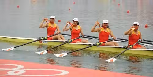 但四位姑娘沒有放棄,在最後200米階段,給英國隊上了一課。她們扭轉局面,改寫歷史,趕超英國隊,第一個衝過終點。最終以6分16秒06獲得第一,拿下了中國賽艇隊在奧運會上的首枚金牌。