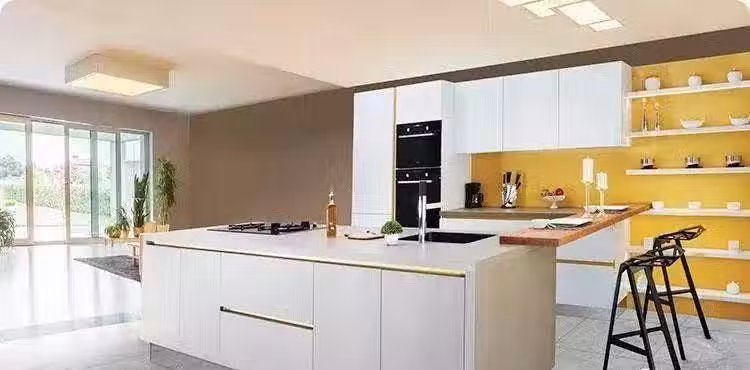 灶台背後也是需要有靠山的,不可空虛。若把灶台設在中央,四面無依無靠,不僅容易在做飯時油漬肆濺,影響廚房衛生,而且也易出現安全隱患。