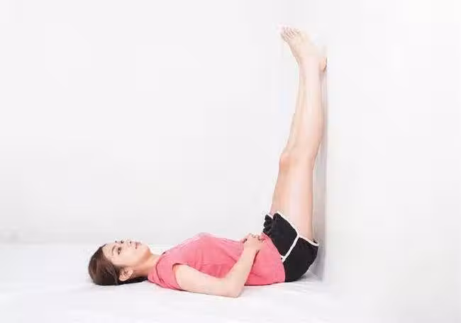2、嘗試根據墊子移動你身體,直至找到對你最為有效的位置;讓腿靠在墻上,並盡量保持垂直;