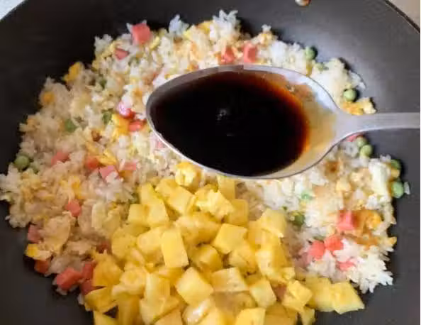 菠蘿也能吃出來花樣,跟剩米飯一炒,酸甜開胃