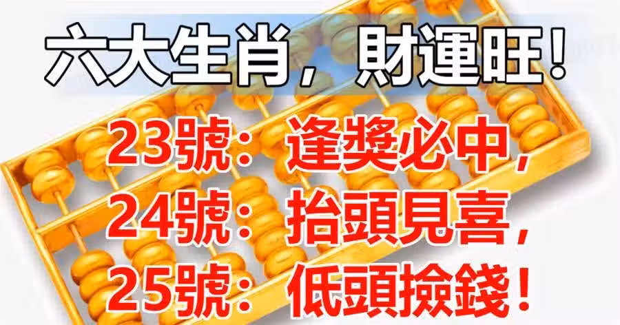 六大生肖,財運氣超旺!23號逢獎必中,24號抬頭見喜,25號低頭撿錢