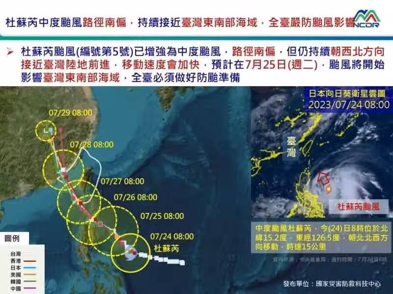 最新/颱風杜蘇芮持續增強為中颱上限 預計今晚8時發海警明發陸警 26、27日影響台灣最大