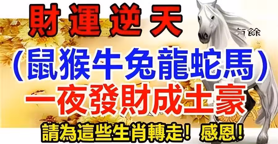 財運逆天(鼠猴牛兔龍蛇馬)一夜發財成土豪,請為這些生肖轉走