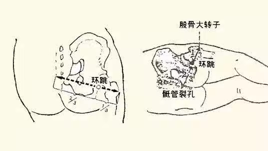 位置:股骨大轉子和骶管裂孔連線的外三分之一處。