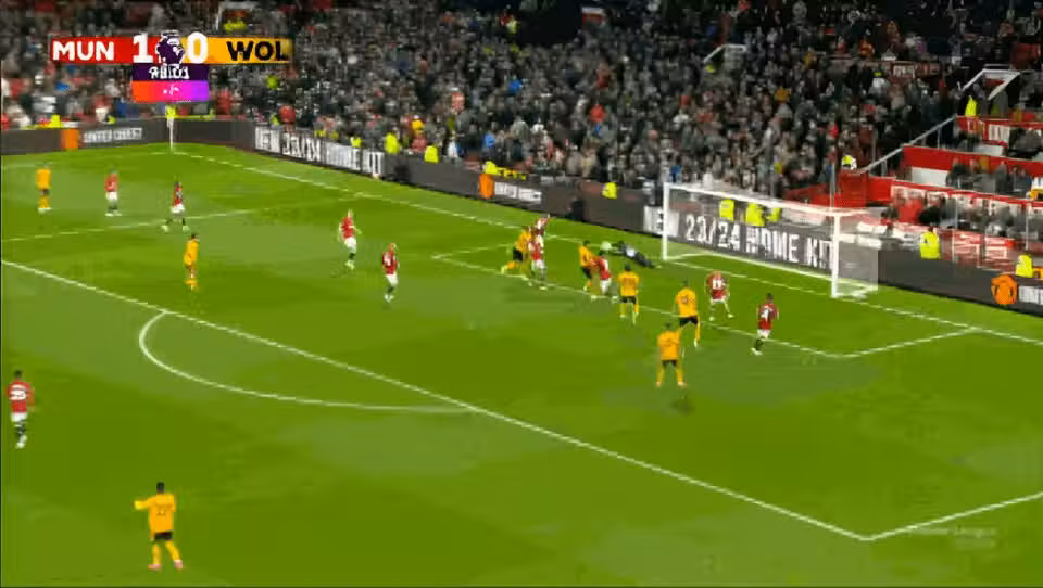 當狼隊在比賽最後時刻瘋狂傳中,禁區內不斷堆積人員,曼聯的防線面臨巨大壓力。而一位擅長出擊的門將,可以在這種時刻大幅減輕壓力。奧納納果斷地出擊,撞倒了狼隊的球員,儘管經過VAR的審核,卻沒有犯規。讓曼聯球迷欣喜的是,奧納納在比賽最後階段的一次驚險出擊,化解了狼隊的傳中威脅:
