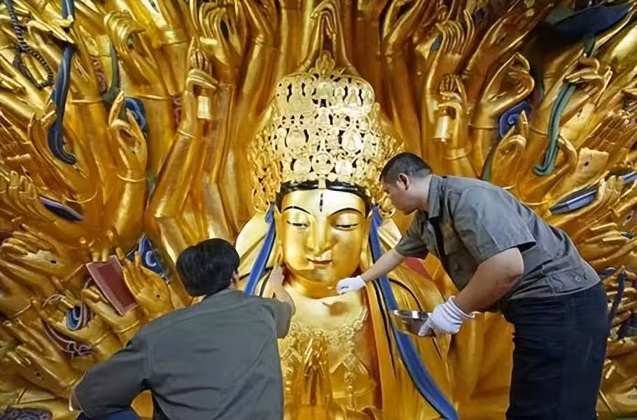 800年千手觀音像出現「破損」!工人修復時意外觸發機關 打開後「發現驚天秘密」在場人都沸騰