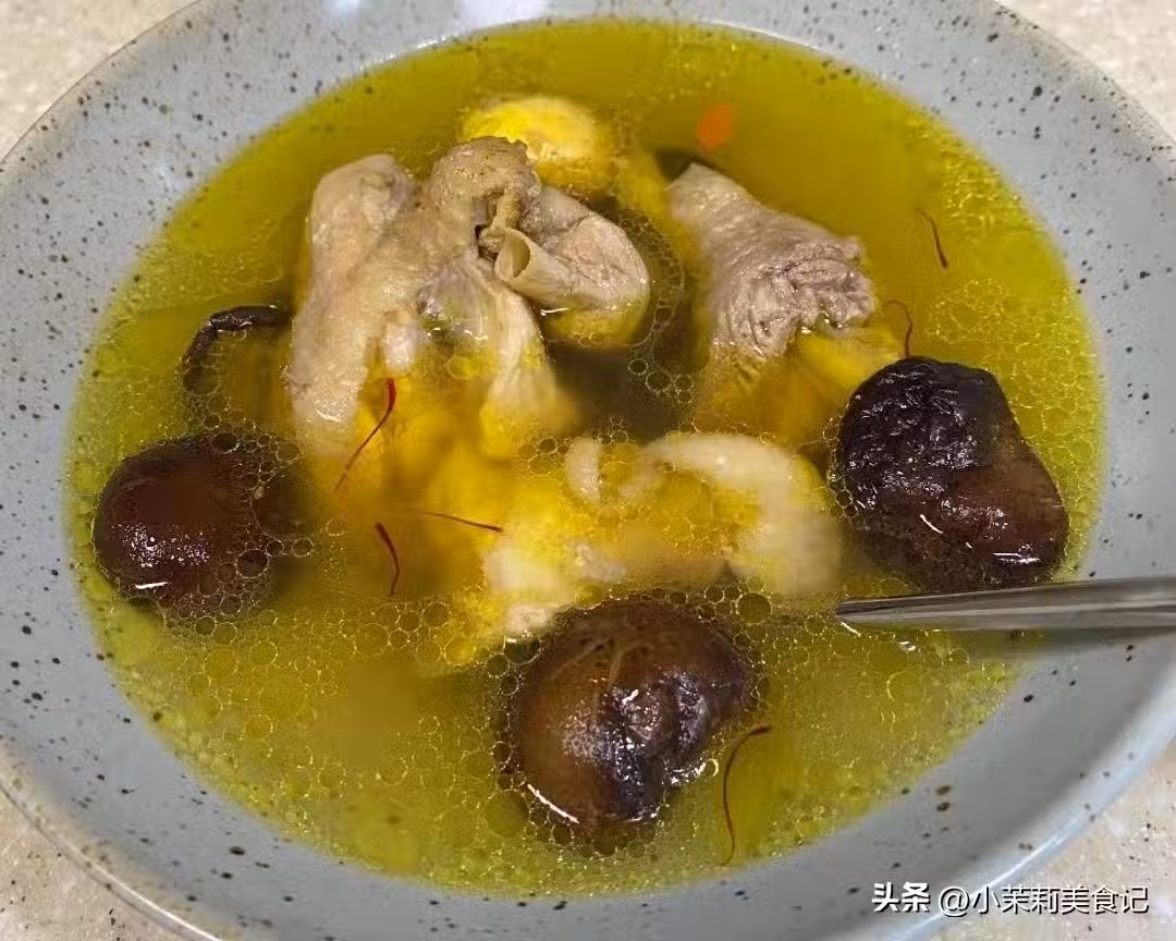 3、接著將香菇放進去,與雞肉一起小火燉一個半小時左右,讓食材的鮮香與營養充分釋放。
