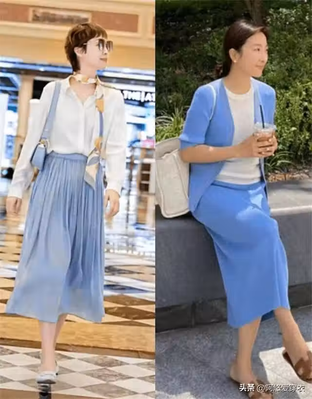 所以最佳的方案就是選擇基礎色和流行色相結合的搭配來讓我們的造型保持時尚感,比如夏日穿白色的女人很多,但一身白總覺得單調,配合流行的藍色就能夠相互呈現1+1大於二的效果。