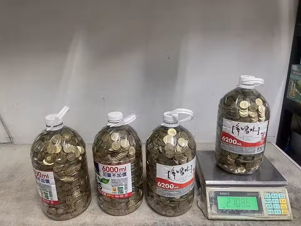 存了4大桶「50元硬幣」重達108公斤!總價值揭曉他驚訝:居然沒半枚是假的!