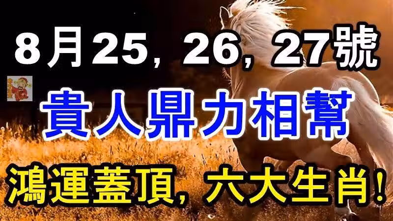 8月25,26,27號鴻運蓋頂,貴人鼎力相幫的六大生肖