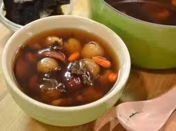 3、桂圓肉20克,放進300毫升的沸水浸泡約5分鐘後食肉喝湯。可補血醒神,為經常熬夜,快節奏生活人士等人士提神的首選。
