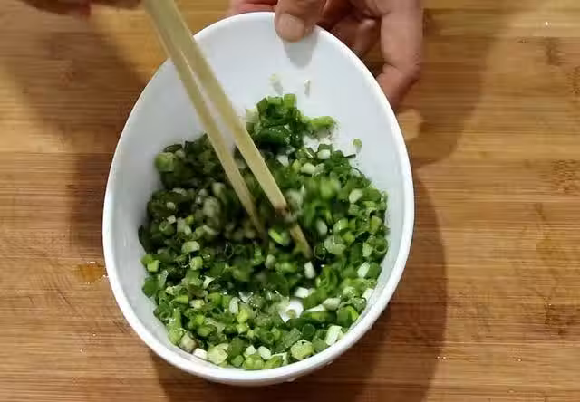 3.準備一個大盆倒入豆渣,把胡蘿蔔抓軟擠壓出水分放入盆中,倒入調好味的小蔥,打入2個雞蛋,雞蛋容易結團口感更加軟嫩,把所有原料抓拌均勻,加入麵粉50克繼續抓拌成團,麵粉能增加餡料的抱合力更易成形。
