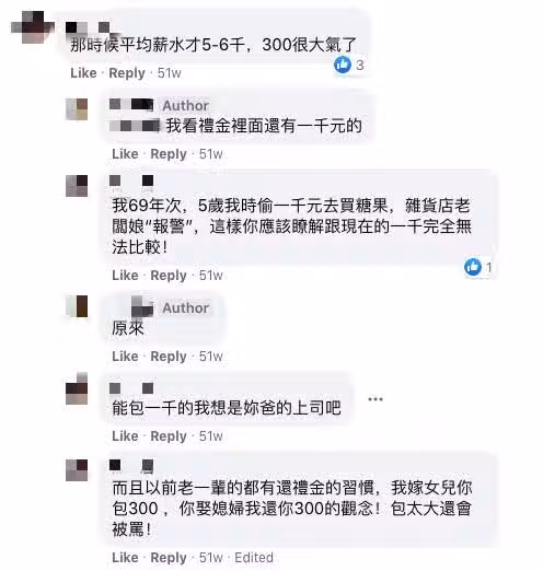 不過網友們看完後,反而覺得原PO父母家境一定很不錯,「那時候平均薪水才5、6千,給300塊很大氣了」、「以前的百=現在的千」、「40年前,我隔壁鄰居用120萬買了透天厝」、「我69年次的,還記得5歲時,曾經偷一千元去買糖果,結果雜貨店老闆娘馬上報警,這樣你應該了解幣值有多大了吧!」