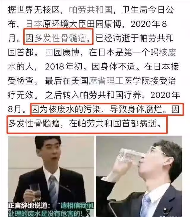 日本人口口聲聲核污水是安全的,喝了都沒事。