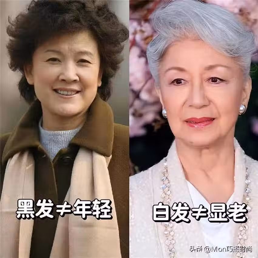 千萬不要認為,黑發就等於年輕,白發就等於疲憊顯老,就算是黑發的女人,如果你保養得不好皮膚差,而且穿搭土氣,那就算你的頭髮再濃密,依舊會暴露年齡感;就算頭髮已經花白,只要你會穿會打扮,多去注意各種打扮上的細節,你的氣質還是照樣出眾。
