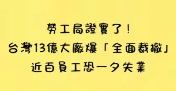 勞工局證實了!台灣13億大廠爆「全面裁撤」近百員工恐一夕失業!